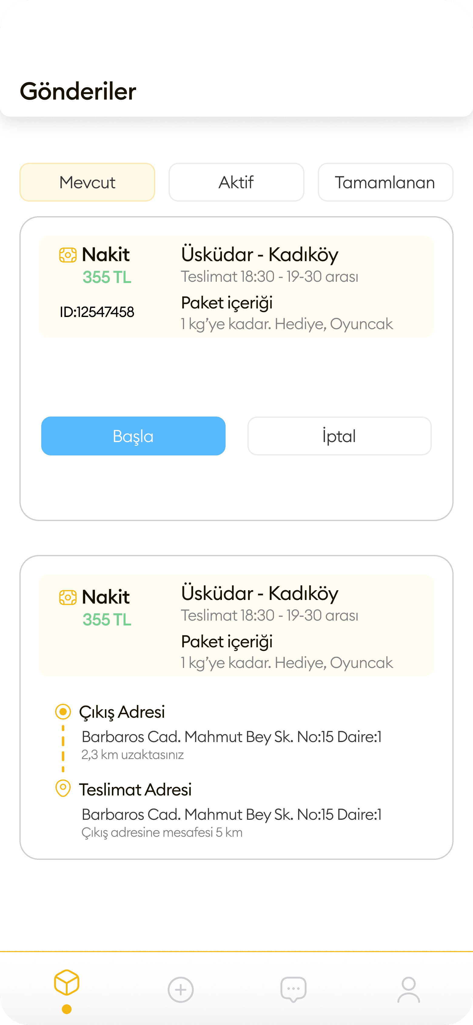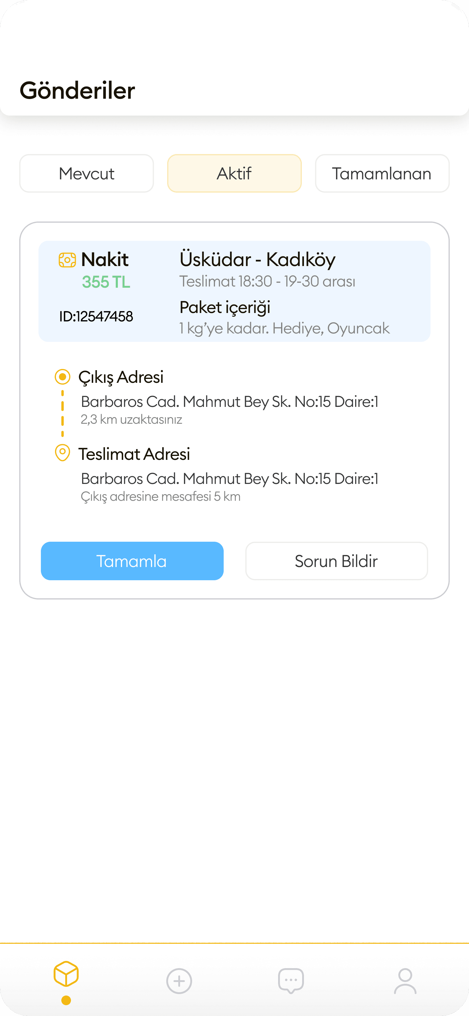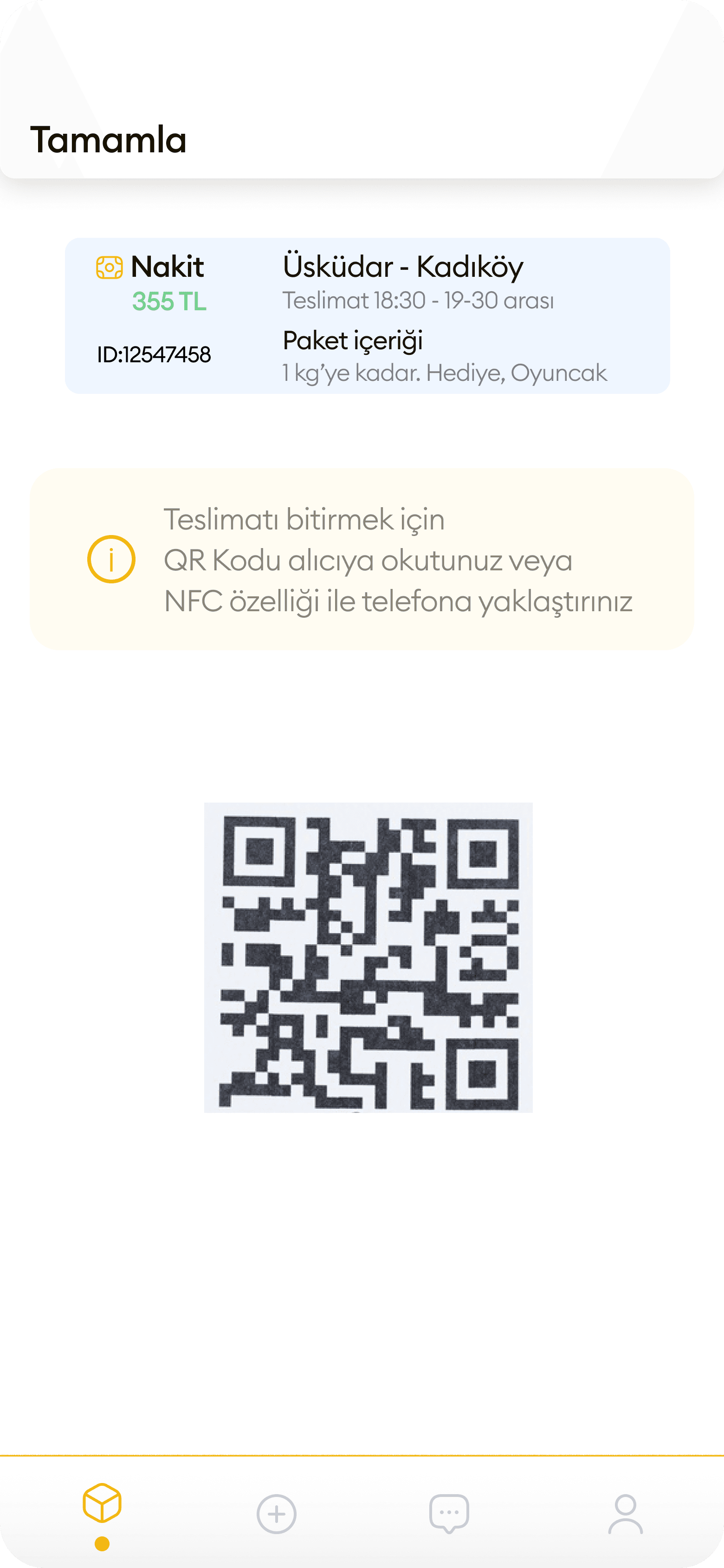 Cargo shipments created by users are designed to appear on the screen of the courier closest to that region. The courier will accept the package according to its suitability and start the process. The courier cannot open the box, it will only be opened with the qr transmitted to the recipient.