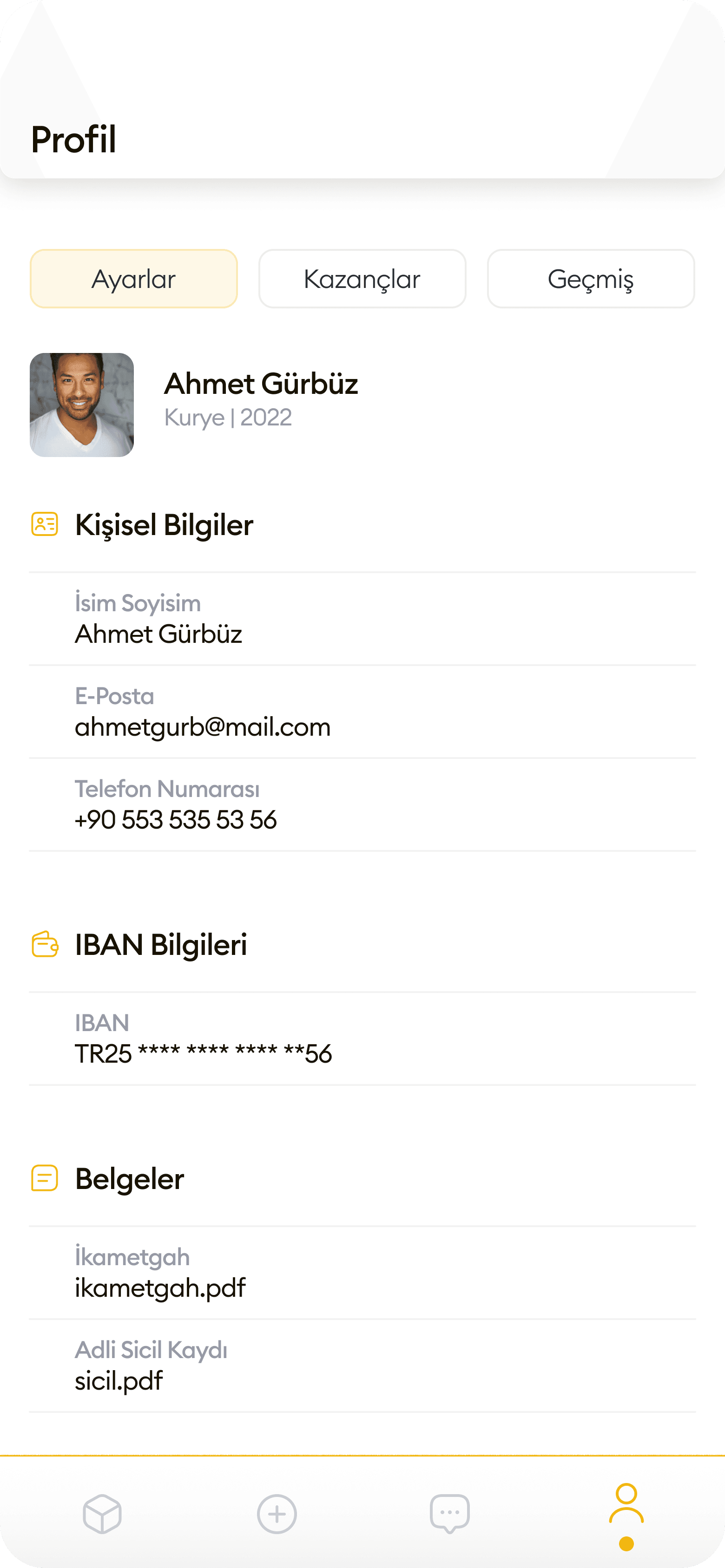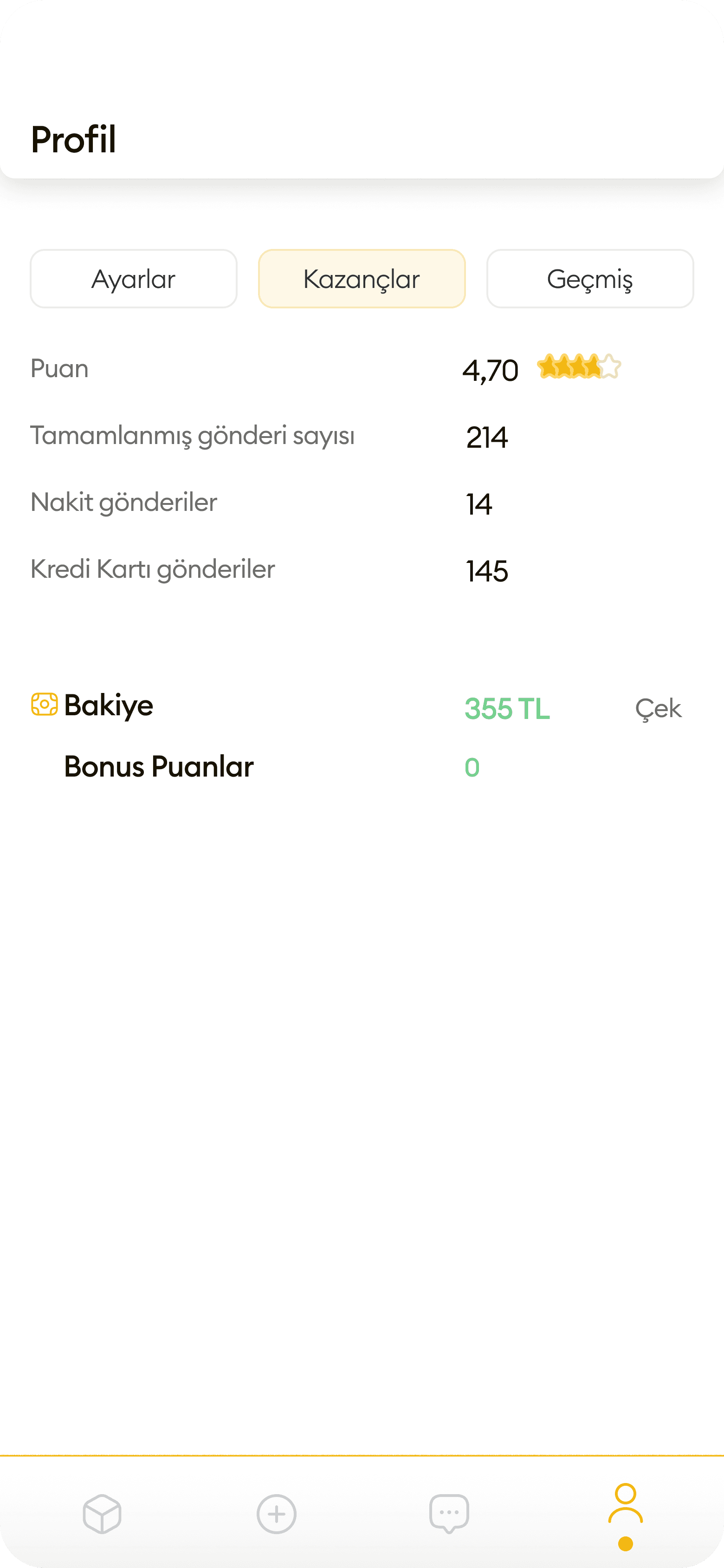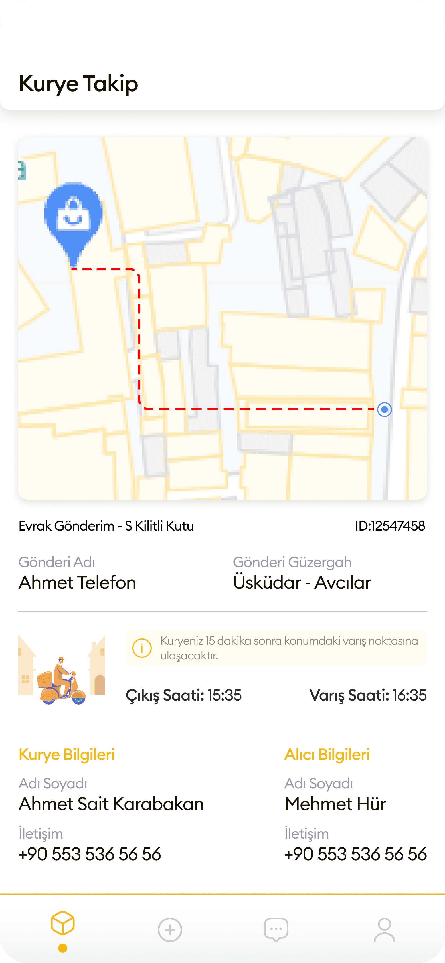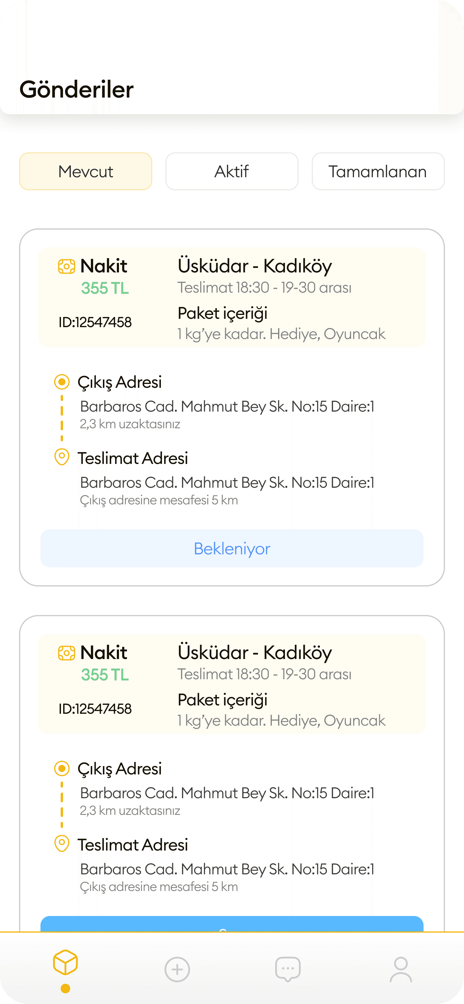 Cargo shipments created by users are designed to appear on the screen of the courier closest to that region. The courier will accept the package according to its suitability and start the process. The courier cannot open the box, it will only be opened with the qr transmitted to the recipient.