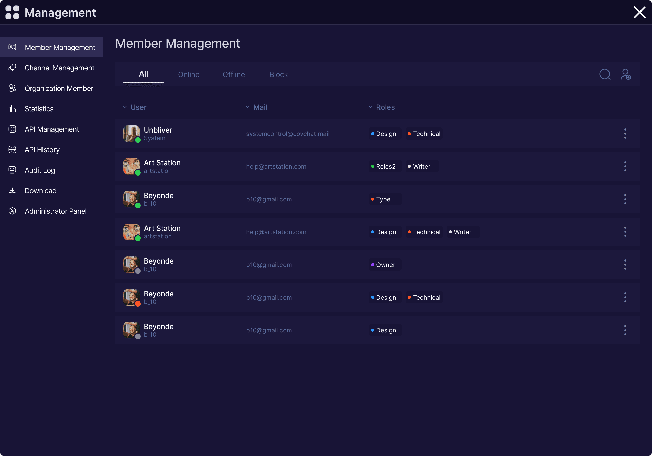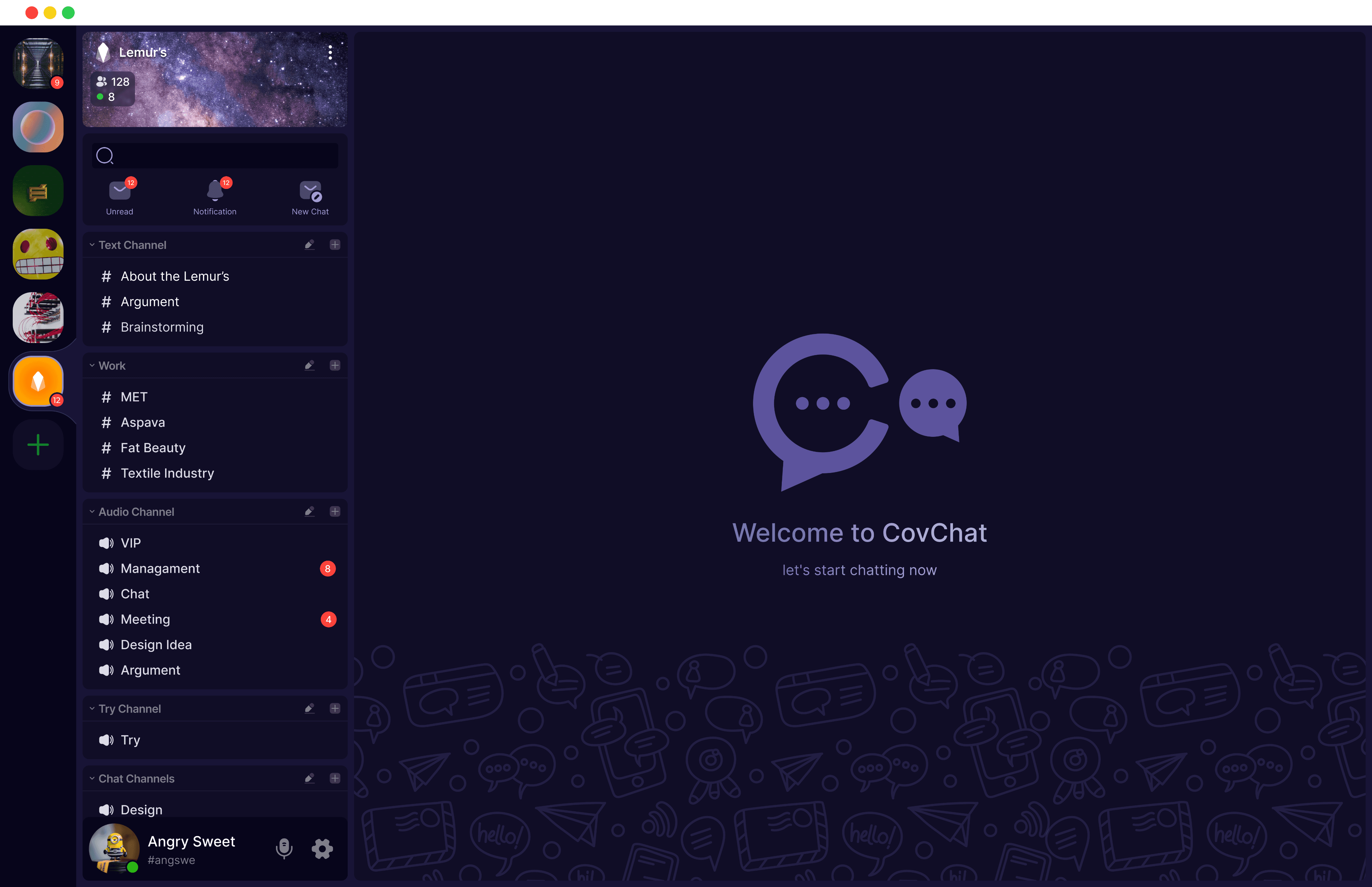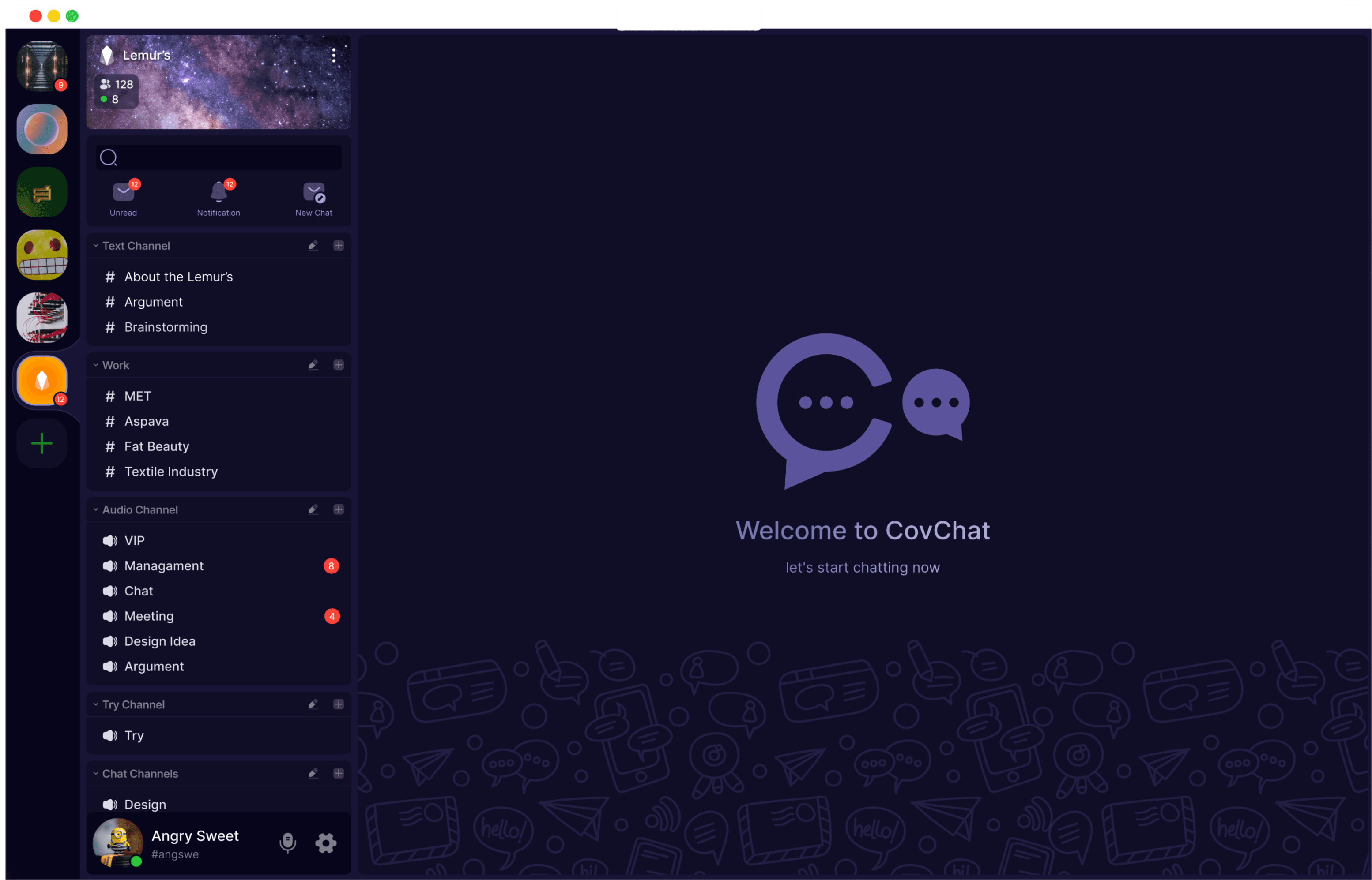Covchat is a desktop application that allows you to chat with your friends, internal employees and groups you create by purchasing an in-app server. Each server has capacity and limits. You can upgrade server features with premium options. The application, which includes new features, can track and manage internal users. Employees have a management area for their working hours and leaves.