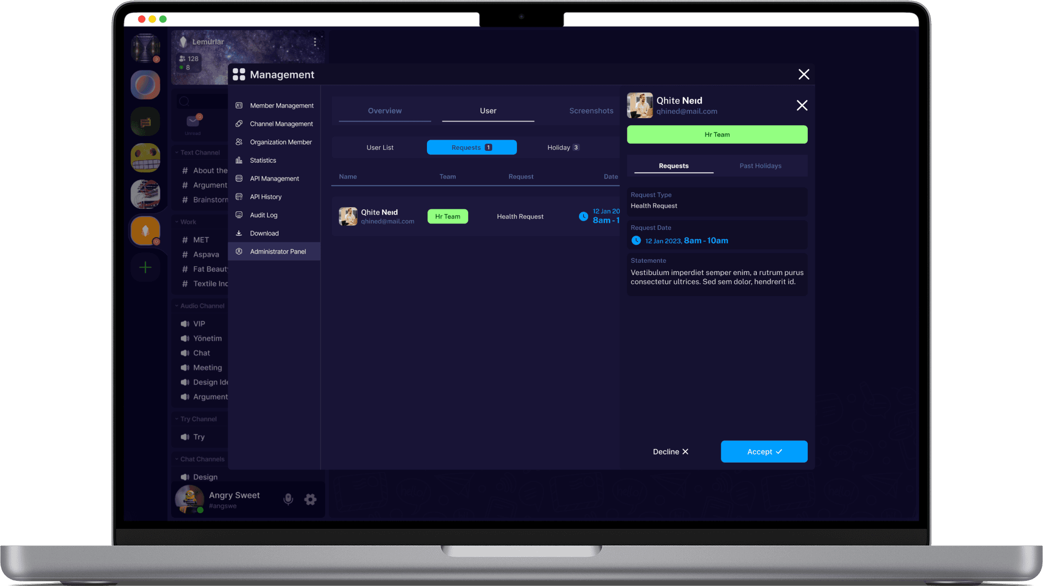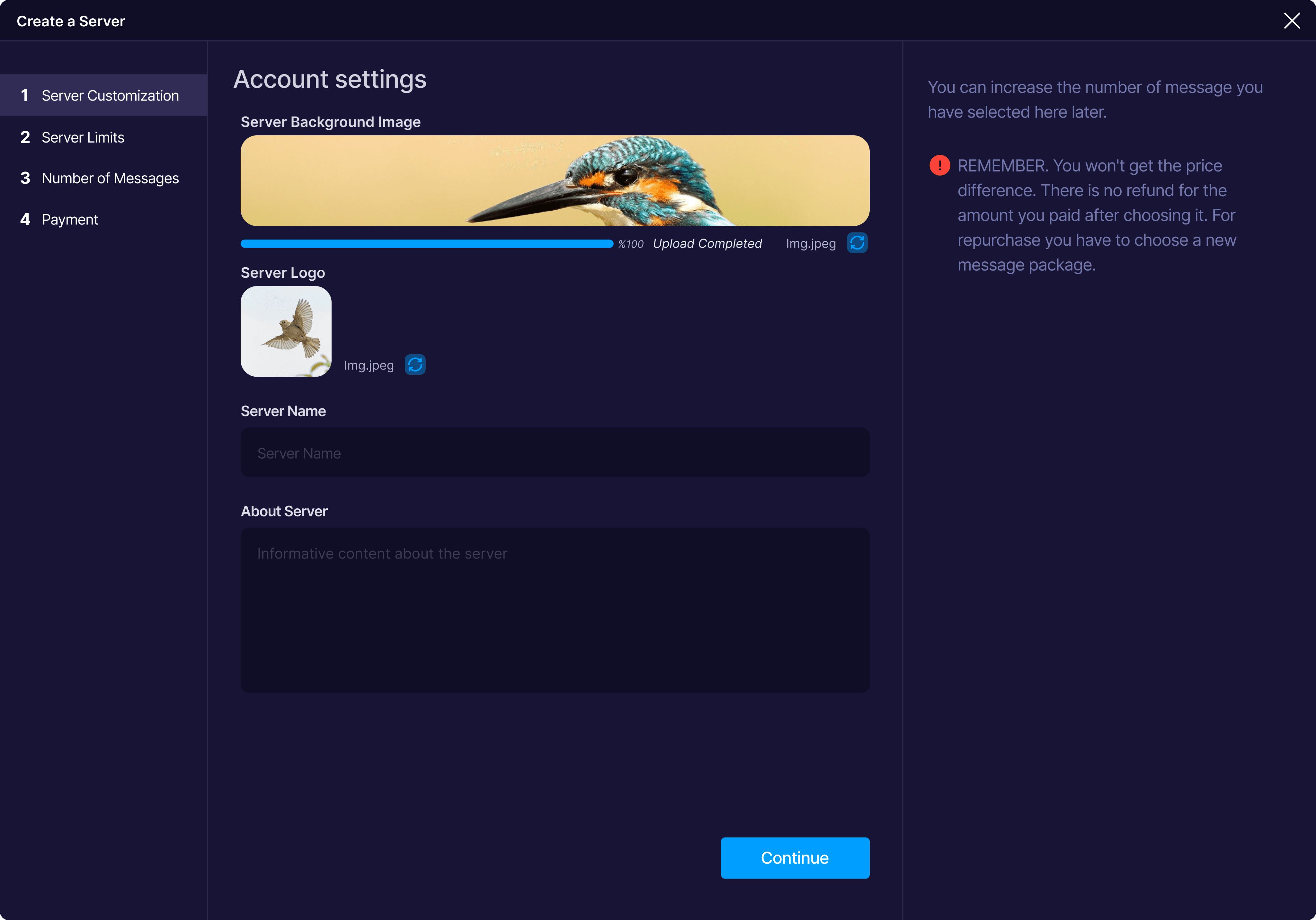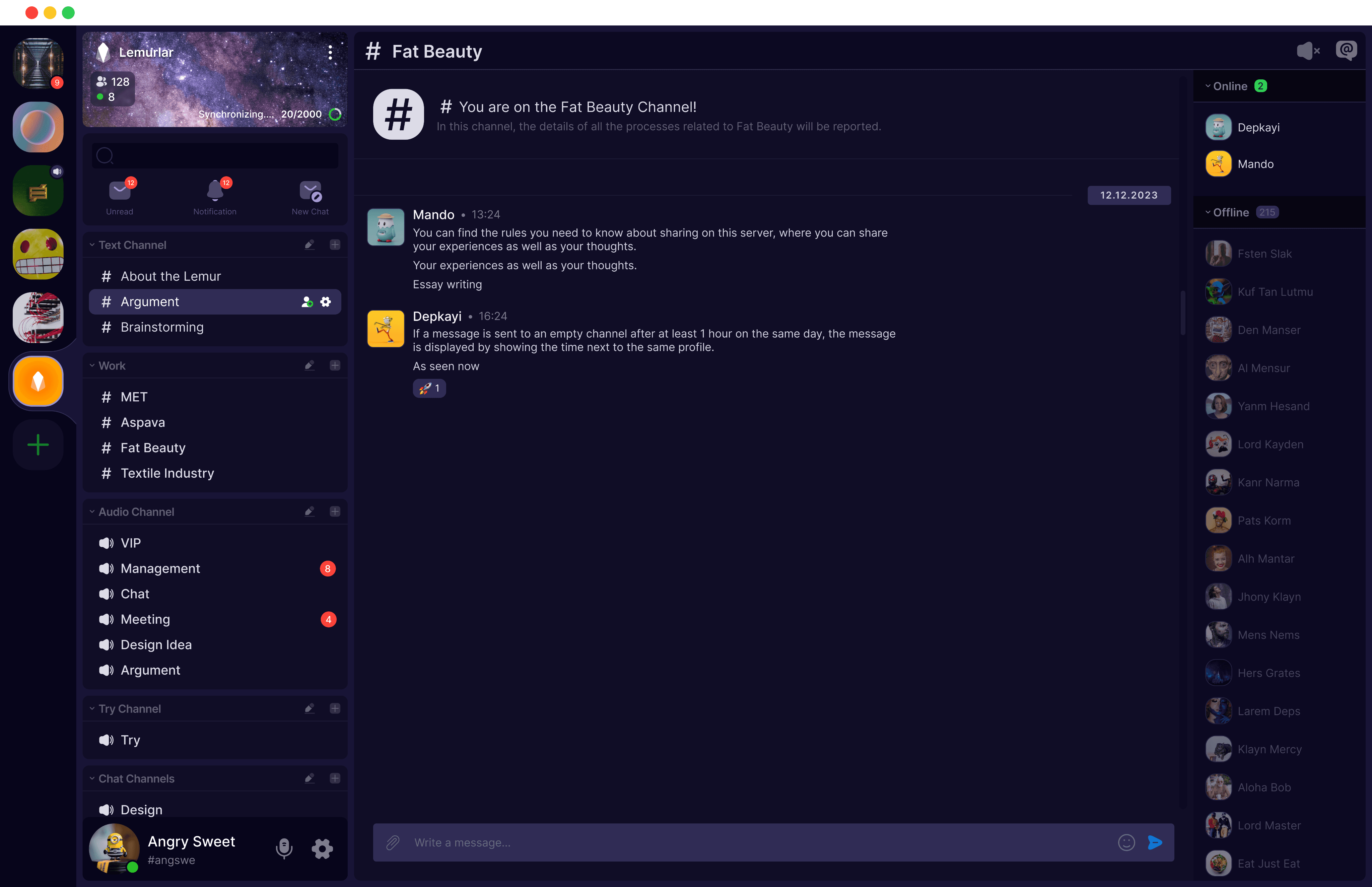 Covchat is a desktop application that allows you to chat with your friends, internal employees and groups you create by purchasing an in-app server. Each server has capacity and limits. You can upgrade server features with premium options. The application, which includes new features, can track and manage internal users. Employees have a management area for their working hours and leaves.